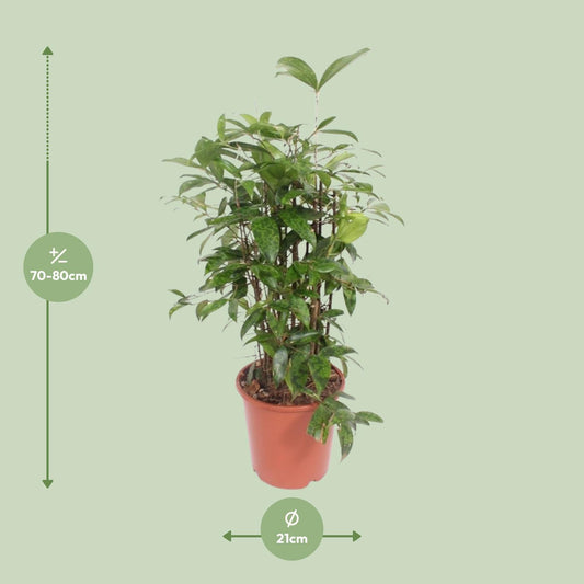 De Dracaena Surculosa, ook wel goudstofplant genoemd, is een stijlvolle kamerplant met gevlekte bladeren die een vleugje exotische elegantie toevoegt aan elke ruimte. Deze makkelijke groeier gedijt op een lichte plek en heeft slechts af en toe water nodig. Met zijn unieke uiterlijk en luchtzuiverende eigenschappen is de Dracaena Surculosa een aanwinst voor zowel beginnende als ervaren plantenliefhebbers. Breng een stukje tropisch Afrika in huis met deze charmante kamerplant!